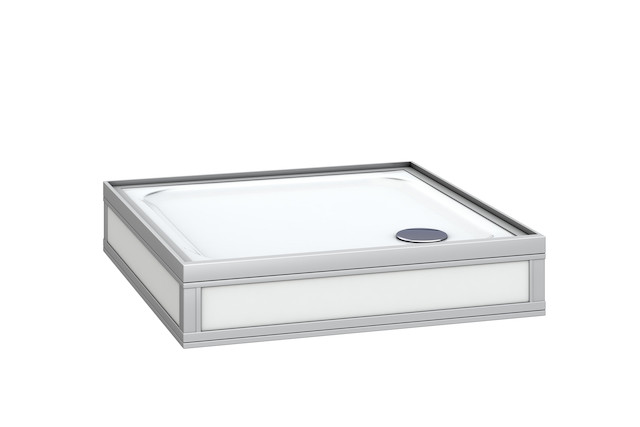 Wannenmaß 800 x 800 mm, Aluminiumgestell mit Stahl-Emaille-Brausewanne (weiß), abnehmbarer Verkleidung (silbergrau), niedrige Einstiegshöhe 180 mm
