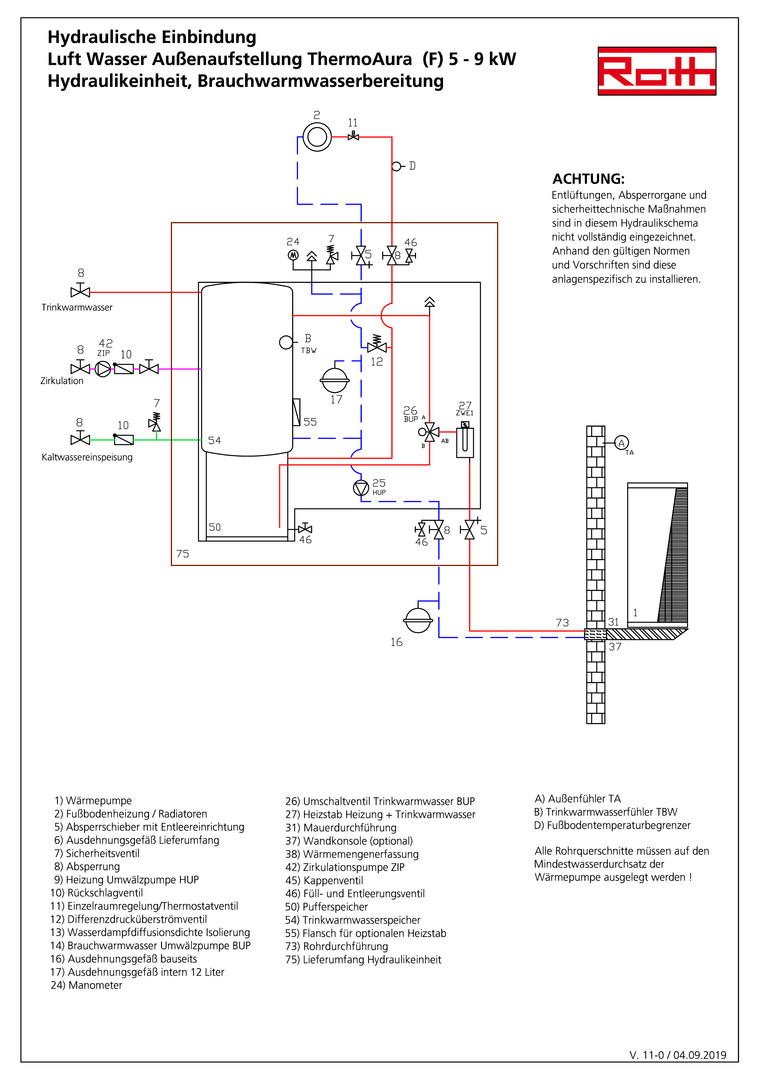 Roth Luft/Wasser-Wärmepumpe ThermoAura F9 kW, 280/90, mit Hydraulikeinheit und Regelung, zur Außenaufstellung W836072