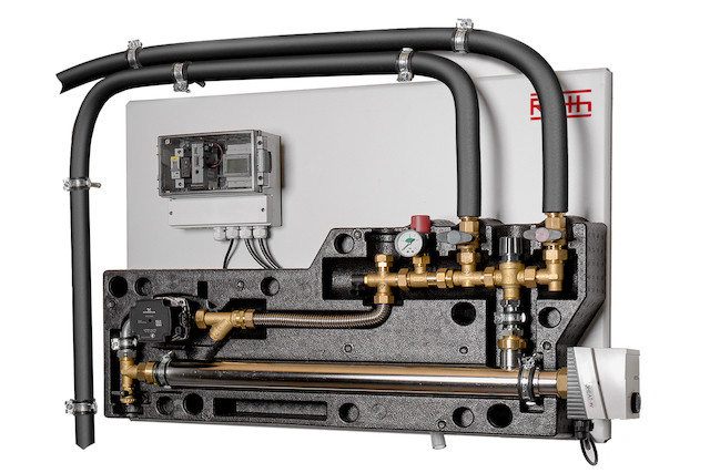 für hohe Speichertemperaturen, Legionellenschutz und zur Speicherung von PV-Überschussstrom, die Wandkonsole PTH ist für eine einfache Montage an der Wand konzipiert, um so dem Nutzer mit Hilfe des integrierten 7-stufigen Heizelements (regelbar 0,5 - 3,5 kW) eine energieeffiziente und sanfte Hochtemperatur-Schichtung zu generieren, hierzu kann die Wandkonsole direkt an den jeweiligen Speicher angeschlossen werden, Sie kann an eine Vielzahl von Speichertypen angeschlossen werden (Puffer-, Hygiene-, Solarspeicher etc.), das Heizelement ist ausgestattet mit Temperaturregler und Temperaturbegrenzer (STB) und wird über die IOT-Plattform betrieben, die Wandkonsole PTH kann auch als Direktheizung genutzt werden, nicht geeignet für Trinkwasser, Anschlussfertige Wandkonsole bestehend aus: hohe Wasserhygiene, hocheffiziente Speicherbeladung für max. PV-Überschussstrom-Speicherung, montagefreundlich, keine Verwirbelung der Temperatur-Schichtung, Ansteuerung möglich über LAN, steuerbar über App, anschlussfertig mit zwei flexiblen sauerstoffdichten OXYban-Schläuchen, Länge 1,6 m (im Lieferumfang enthalten), Pumpe und Heizstab fertig verdrahtet, ein Smart Meter zur Erfassung des Verbrauches im Lieferumfang enthalten, automatische Temperaturregelung, Vorlauftemperatur frei wählbar (50-75 °C), Temperaturen bis 85 °C möglich, Legionellenschutz durch hohe Temperatur, Pumpe selbstregelnd, manueller Heizbetrieb auf Zeit möglich, Überdruckventil 3 bar, Hydraulikeinheit bis 10 bar geprüft, Technische Daten: Leistungsklassen bei 400 V (kW) 0,5-3,5 Temperatureinstellbereich 50-75 °C, Betriebsdruck bis 3 bar, hydraulische Anschlüsse 3/4" IG