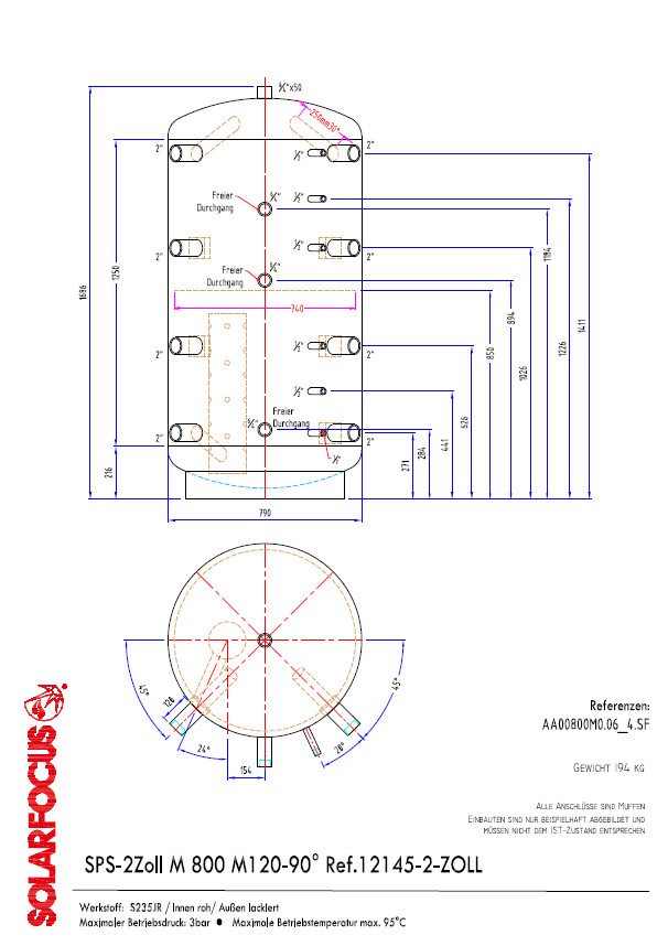 SF SCHICHTPUFFERSPEICHER 800 l ohne Solarregister - 2 Zoll