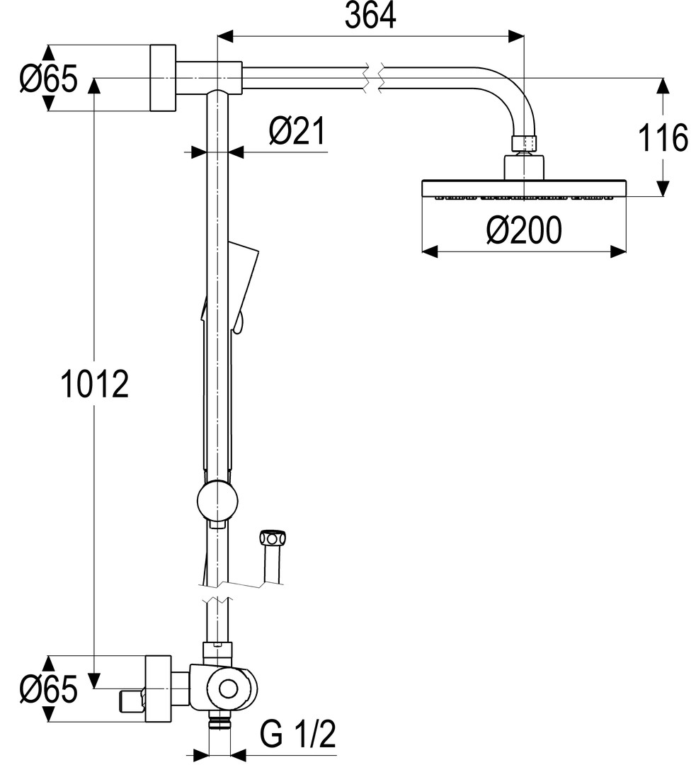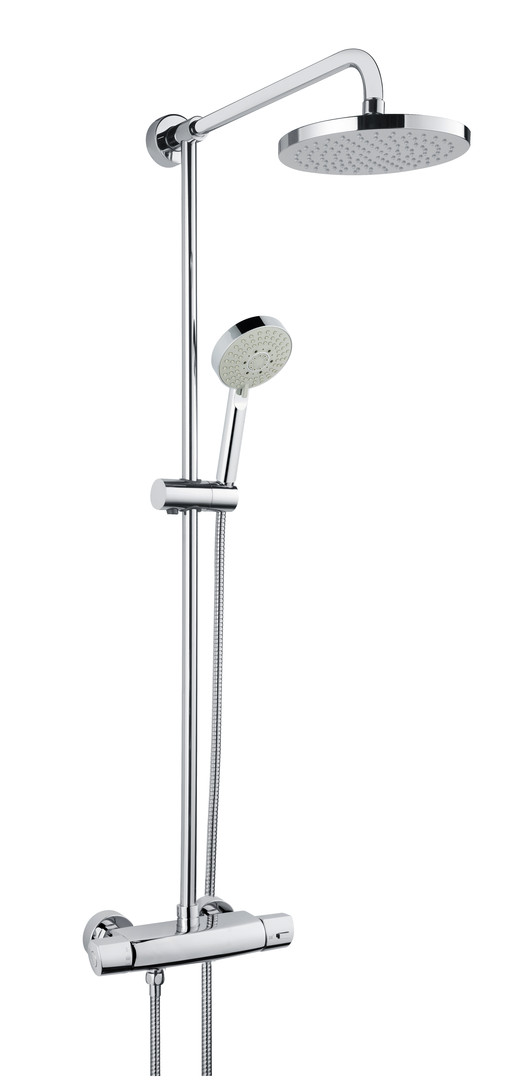 SH Duschsystem Serie omega_400 mit wasserführendem Brausegestänge, verstellbarem Gleiter, Regenbrause Durchmesser 200 mm, Handbrause 5F, Brauseschlauch 1250 mm, in chrom