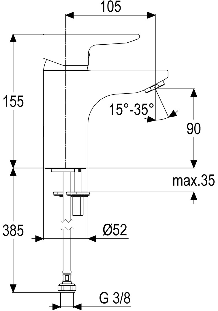 SH Waschtisch-Einhebelmischer Serie alpha_400 ohne Ablaufgarnitur 1 1/4", Ausladung 105 mm, Höhe bis Strahlregler 90 mm, in chrom, DVGW zertifiziert