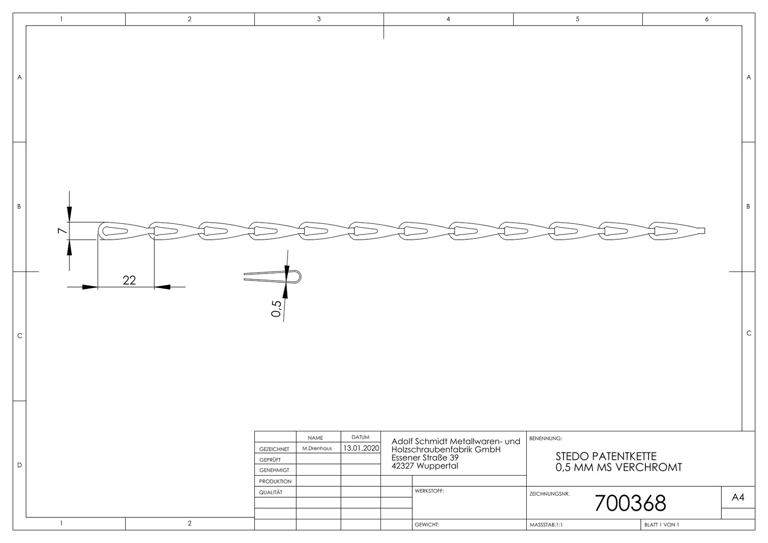 STEDO Patentkette Ø 0,5 mm, 25 m Rolle, Messing verchromt W347909