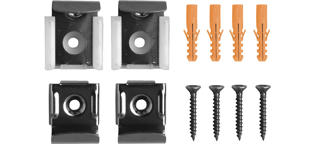 mit 2 Ober- und 2 Unterteilen, 4 Schrauben und 4 Dübel, für Spiegel bis 10 kg