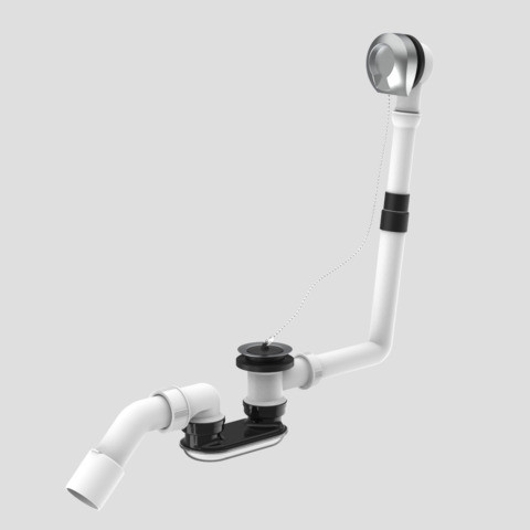 aus Kunststoff, mit Geruchsverschluss, Ablaufbogen Ø 40/50 mm, Klemmrosette verchromt und Stopfen für Badewannen