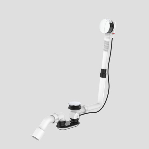 mit Geruchverschluss und Ablaufbogen d 40/50 mm, verchromte Bedieneinheit mit rückstellbarem Drehgriff, mit 3 Designelementen in den Farben weiß-alpin, matt-chrom, und schwarz RAL 9005, Ventilkegel und Montageset, für Badewannen mit Drehexzenterbetätigung