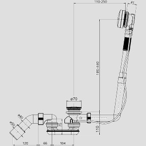 Sanit Ab- und Überlaufgarnitur SWING 110mm, Kunststoff, 650 mm