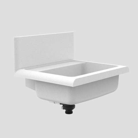 mit Spritzschutzrückwand, aus schlagfestem, temperatur- und witterungsbeständigem Kunststoff, Fassungsvermögen ca. 12 l, Markierungen in der Ablagefläche zur Anbringung von Seifenspender und Armatur (werden nicht mitgeliefert), komplett mit verdecktem Überlauf und Push-Open Ablaufventil G 1 1/2, Abdeckung Edelstahl, Montageset mit verdeckten Aufhängungen