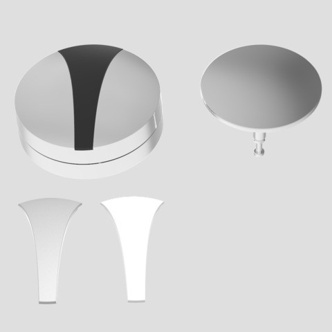 bestehend aus einer Bedieneinheit mit rückstellbaren Drehgriff und Ventilkegel, verchromt inkl. 3 Designelementen in den Farben weiß-alpin, mattchrom und schwarz (RAL 9005)