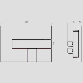 Kunststoff, Aufwandmontage, Rechteck-Design mit bündigen Betätigungstasten, flacher Aufbau, für UP-Spülkästen mit kleiner Revisionsöffnung, Kabeltechnik-Betätigungsweg 14 mm, bestehend aus: Tastenrahmen, Betätigungstasten und Befestigungsbolzen, passend zu folgenden UP-Spülkästen: CC-121-S-FO-2V-2C ab Serienabstand 0, CC-121-S-UO-SV-2C ab Serienabstand 0, CC-150-S-UO-SV-2C ab Serienabstand 20, CC-150-S-FO-2V-2C ab Serienabstand 20, CC-80-S-FO-2V-2C ab Serienstand 0