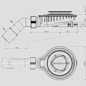 ohne Abdeckplatte, mit herausnehmbaren Geruchverschlusseinsatz, Flachdichtung, Ablaufbogen 40/50 mm, Geruchverschlusshöhe 50 mm, Ablaufleistung 0,6 l/s nach DIN EN 274
