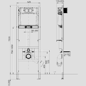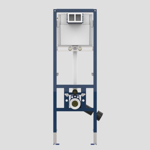 mit kleiner Revisionsöffnung, Betätigung von vorn, selbsttragende, pulverbeschichtete Stahlrahmenkonstruktion, bis 400 kg statisch belastbar, zur Trockenverkleidung, Einbau vor Massivwand, in Leichtbau-Ständerwand, 4 Befestigungspunkte, komplett vormontiert, mit selbsthemmenden Füßen mit verstellbaren Fußplatten und Befestigungsmaterial, Verstellbereich Füße von Rohfußboden bis OKFFB: 0-200 mm, Tiefenverstellung Vorderkante Element: 135-205 mm, schwitzwasserisolierter UP-Spülkasten (CC-122-S-FO-2V-2C) mit 2-Mengenspülung (6-4,5 l oder 4-2 l) und flexibler Kabeltechnik, Werkseinstellung 6 und 3 l, mit Bauschutz für Spülrohr, Füllventil Armaturengruppe I, 2-tlg. Eckventil R 1/2, Ablaufbogenschelle 4-fach tiefenverstellbar und Schellenverschluss, PE-WC-Anschlussbogen 90° DN 90 mit Übergangsmuffe DN 90/DN 100 (110 mm) mit Bauschutz, Anschlussgarnitur DN 90 (90 mm)/180 mm komplett, Bauschutzkasten für Revisionsöffnung kürzbar, flexibler Schlauch zum Füllventil von Hand verschraubbar, 2 Haltebolzen M 12 einstellbar 180/230 mm mit Bauschutz und Muttern, mit Traverse für AP-Mischbatterie mit 2 schallgedämmten Wanddurchführungen G 1/2 IG x G 1/2 AG, mit Wandhaltern, ohne Betätigungsplatte