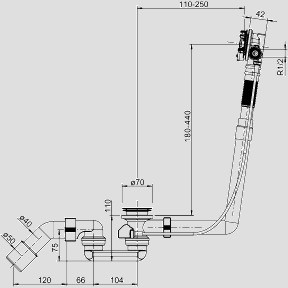 Sanit Funktionseinheit SWING PLUS R 1/2 AG, Kunststoff, 110-250 x 180-440 mm