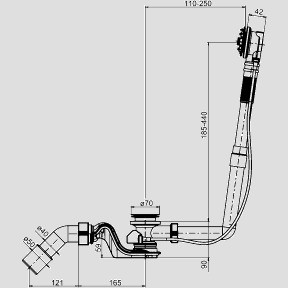 starrer Überlauf, mit Geruchverschluss und Ablaufbogen d 40/50 mm, starrer Überlauf, ohne Bedieneinheit, mit Montageset, für Badewannen mit Drehexzenterbetätigung