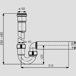 für Duschrinnen ES 50, mit Anschlussrohr DN 50 und Abgangsrohr Ø 50