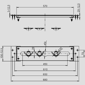 Sanit Modul 680 x 150 x 20 mm, für 3-4 Loch Wannenrandarmaturen