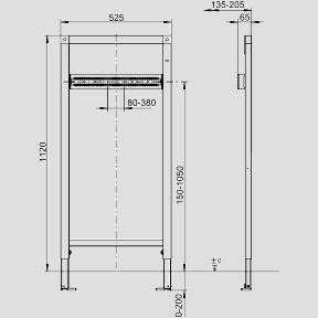 H/B/T: 1120/525/75 mm, Element ist durch verlängerte Füße auf H: 1185 mm einstellbar, selbsttragende, pulverbeschichtete Stahlrahmenkonstruktion, zur Trockenverkleidung, Einbau vor Massivwand, in Leichtbau-Ständerwand u.v.m., 4 Befestigungspunkte, komplett vormontiert, mit Füße und Befestigungsmaterial, universell einstellbar, bestehend aus: wasserfestem, mehrfach verleimten Schichtholz mit verzinkten seitlichen Blechen, zur Befestigung von bauseitigen Wandscheiben, Verstellbereich Füße von Rohfußboden bis OKFFB: 0-200 mm, Tiefenverstellung Vorderkante Element: 135-205 mm (bei Verwendung von Wandhaltern, Art.-Nr. 17.257.00..T000), Traverse vormontiert