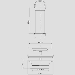 Sanit Standrohrventil verchromt, G1 1/2 x 70 x 120 mm