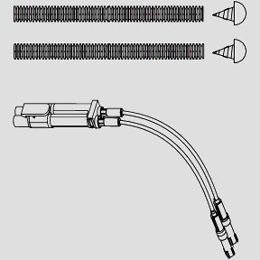 zur Befestigung des Einhängerahmens, bestehend aus: je 2 Schnellspann-Befestigungsbolzen (Länge 245 mm) und Spezialschrauben, zur Befestigung der Betätigungsplatte, mit Kabelbox mit verlängerten Druckspiralen, Kabellänge 340 mm