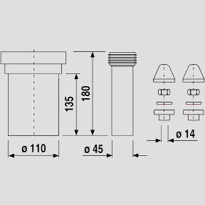 aus Kunststoff PE, schweißbar, für Wand-WC, bestehend aus: WC-Anschlussrohr Ø 45 mm mit Spülrohrverbinder, WC-Anschlussstutzen DN 100 und Abdeckzubehör, Prüfzeichen: geprüft nach DIN 1389