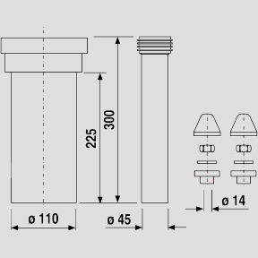 aus Kunststoff PE, schweißbar, für Wand-WC, bestehend aus: WC-Anschlussrohr Ø 45 mm mit Spülrohrverbinder, WC-Anschlussstutzen DN 90 und Abdeckzubehör, Prüfzeichen: geprüft nach DIN 1389