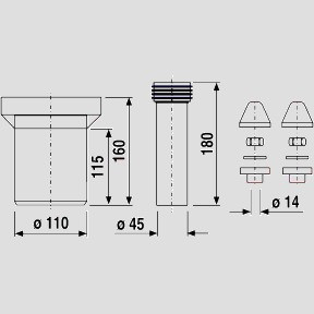 aus Kunststoff PP, für Wand-WC, bestehend aus: WC-Anschlussrohr Ø 45 mm mit Spülrohrverbinder, WC-Anschlussstutzen DN 100 und Abdeckzubehör, Prüfzeichen: geprüft nach DIN 1389