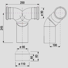 Sanit WC-Doppelbogen 90°, gekröpft, DN 90/90/90, schwarz