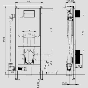 Sanit WC-Montageelement INEO PLUS 450 1120/525 mm, mit Wandhalter und Rohrbelüfterset