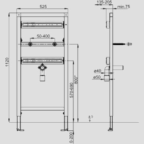 H/B/T: 1120/525/75 mm, Element ist durch verlängerte Füße auf H: 1185 mm einstellbar, selbsttragende, pulverbeschichtete Stahlrahmenkonstruktion, zur Trockenverkleidung, Einbau vor Massivwand, in Leichtbau-Ständerwand u.v.m., 4 Befestigungspunkte, komplett vormontiert, mit Füße und Befestigungsmaterial, universell einsetzbar für Waschtische und Handwaschbecken, min. Stichmaß für AP-Wandarmaturen 53 mm, Verstellbereich Füße von Rohfußboden bis OKFFB: 0-200 mm, Tiefenverstellung Vorderkante Element: 135-205 mm (bei Verwendung von Wandhaltern, Art.-Nr. 17.257.00..T000), mit mehrfach verleimten Schichtholzplatten und Stichmaßskalierung zur freien Positionierung von Trinkwasserrohr-Systemwandscheiben, mit 2 Waschtischbefestigungsbolzen M 10 mit Bauschutz und Waschtisch-Befestigung, mit Universalablaufbogen DN 50 (Ø 50)/DN 40 (Ø 40) Gummimanschette DN 40 (Ø 40)/DN 32 (Ø 32), Bauschutz und schallgedämmter Ablaufschelle, mit Gewindestab M 8 x 80 mm