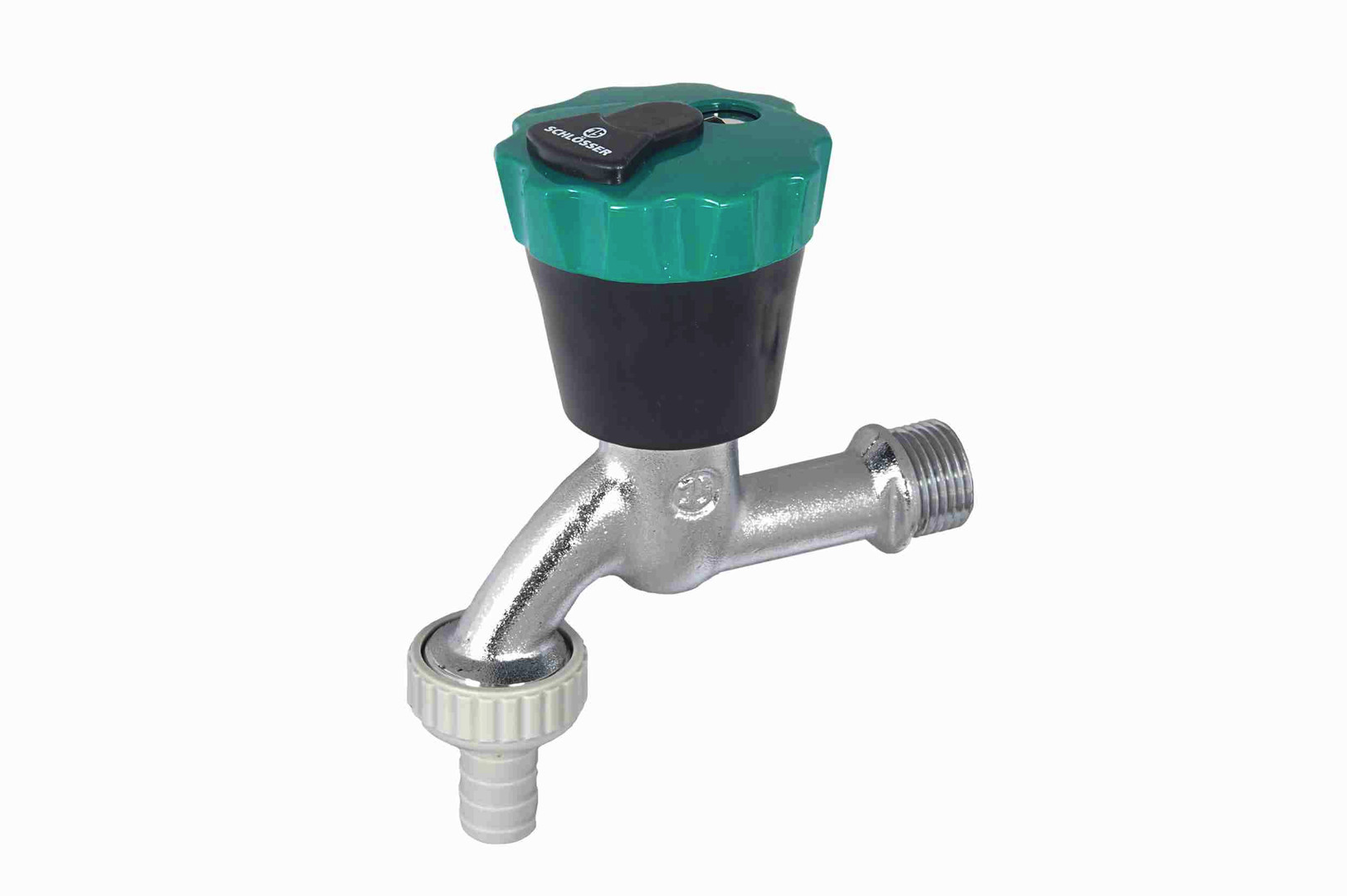 Schlösser Auslaufventil 1930 Wasser-Safe DN 15, 1/2", mit Schlauchverschraubung, matt verchromt