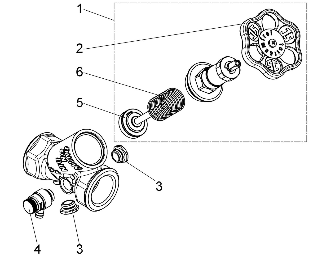Schallschutz (DN 15-32), Entleerungsventil 1831, 1/4", DN 65 1831 3/8", DN 80 1836 3/8" mit Prüfschraube, Oberteil 1821