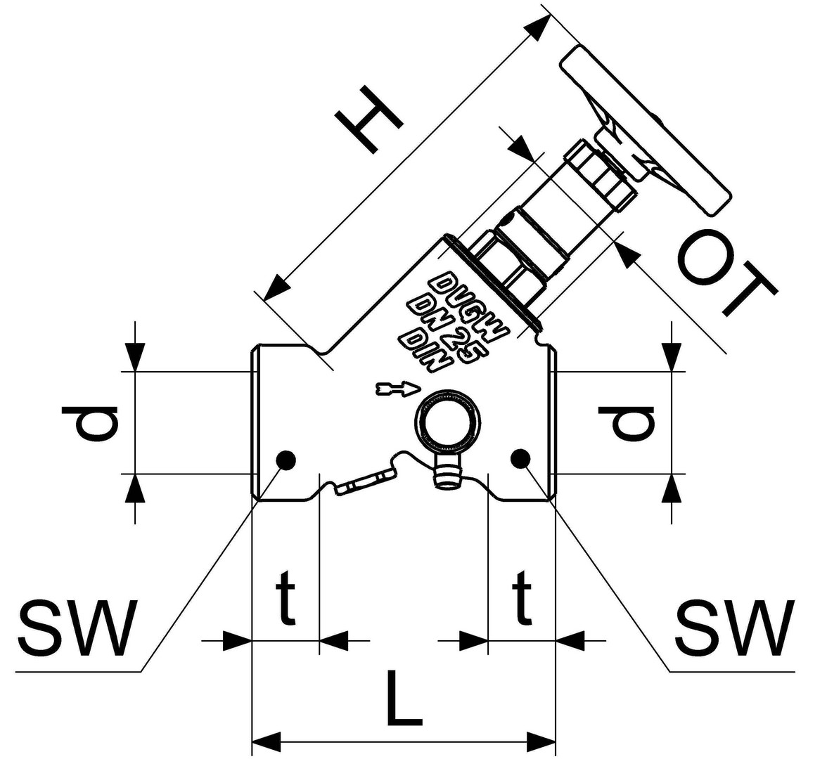 Schlösser KFR-Ventil 1631 Blue-tec DN 25, Rp 1, mit Entleerung, nichtsteigende Spindel W536414