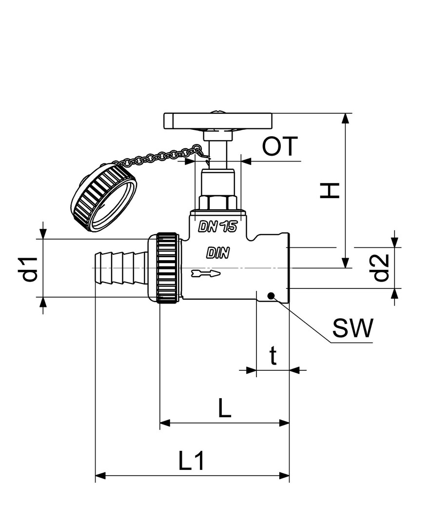 Schlösser Kesselfüllventil 1160 DN 15, G 3/4 Schlauchverschraubung Kappe/Kette x Rp 1/2 IG
