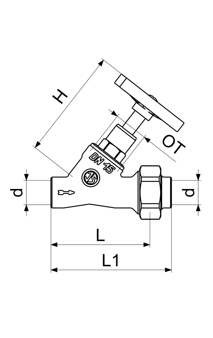 Schlösser Schrägsitzventil 1440 DN 20, 22 mm, ohne Entleerung, steigende Spindel 245335
