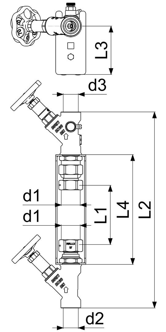 Edelstahl-Bügel, Freistromventil 1535, Oberteil 1818, KFR-Ventil 1635, Oberteil 1821, ohne verstellbaren Wandabstand