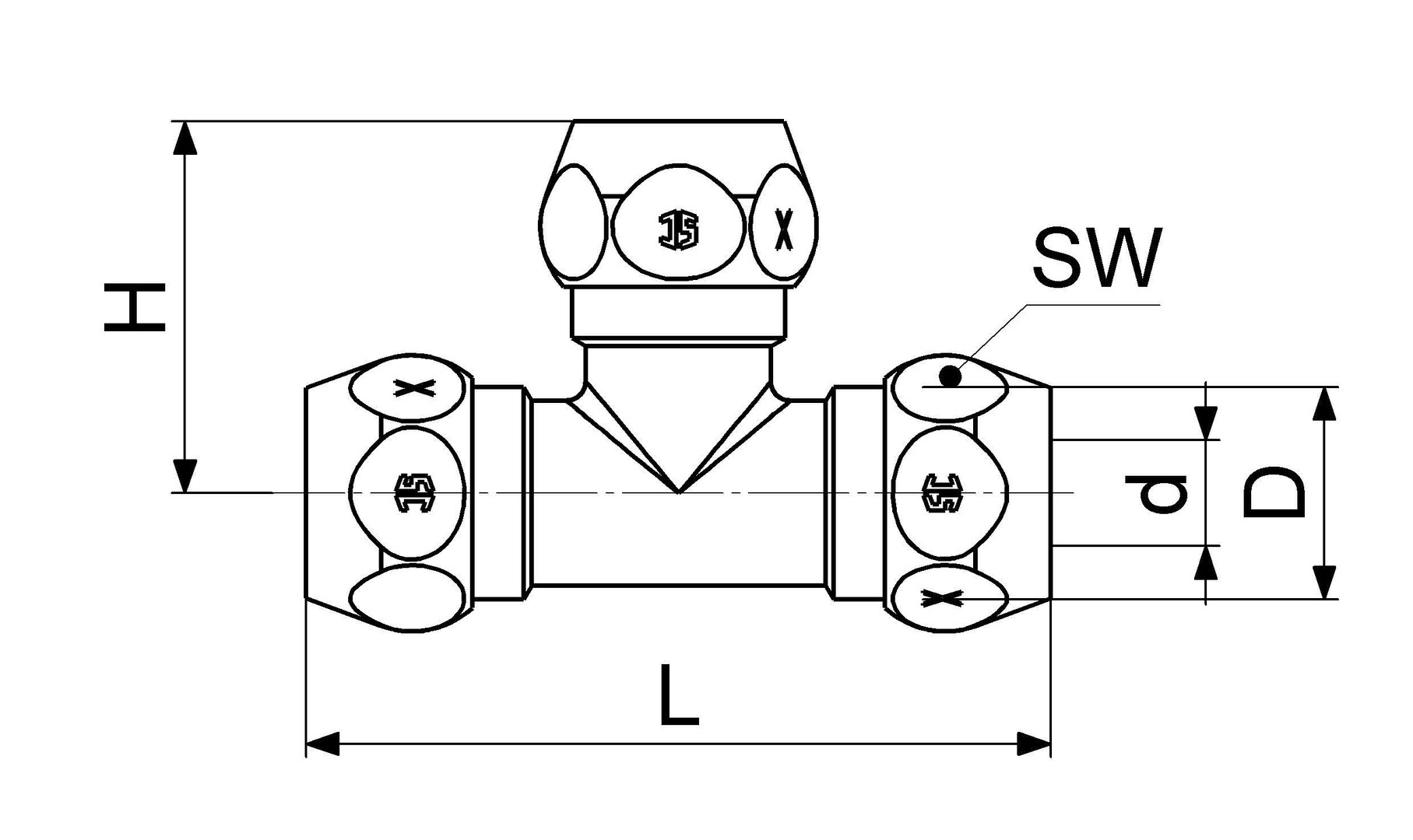 Schlösser T-Stück 8381 3/8" x 12 mm, DVGW, mit Quetschverschraubung, verchromt W331011