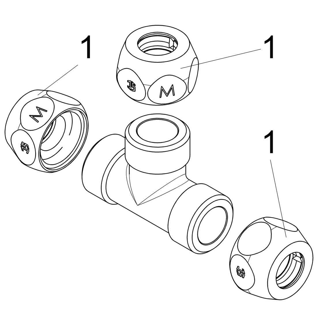 Schlösser T-Stück 8381 3/8" x 8 mm, DVGW, mit Quetschverschraubung, verchromt W331009