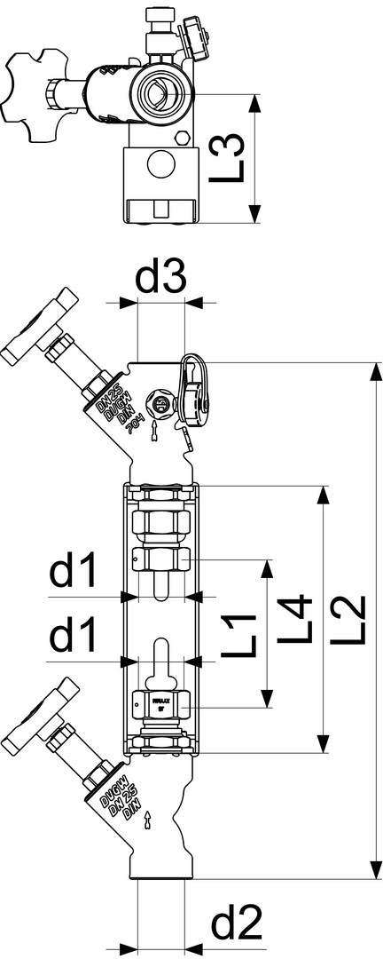 bestehend aus: Freistromventil 1535, nichtsteigende Spindel 1818, KFR-Ventil 1635, Oberteil 1821