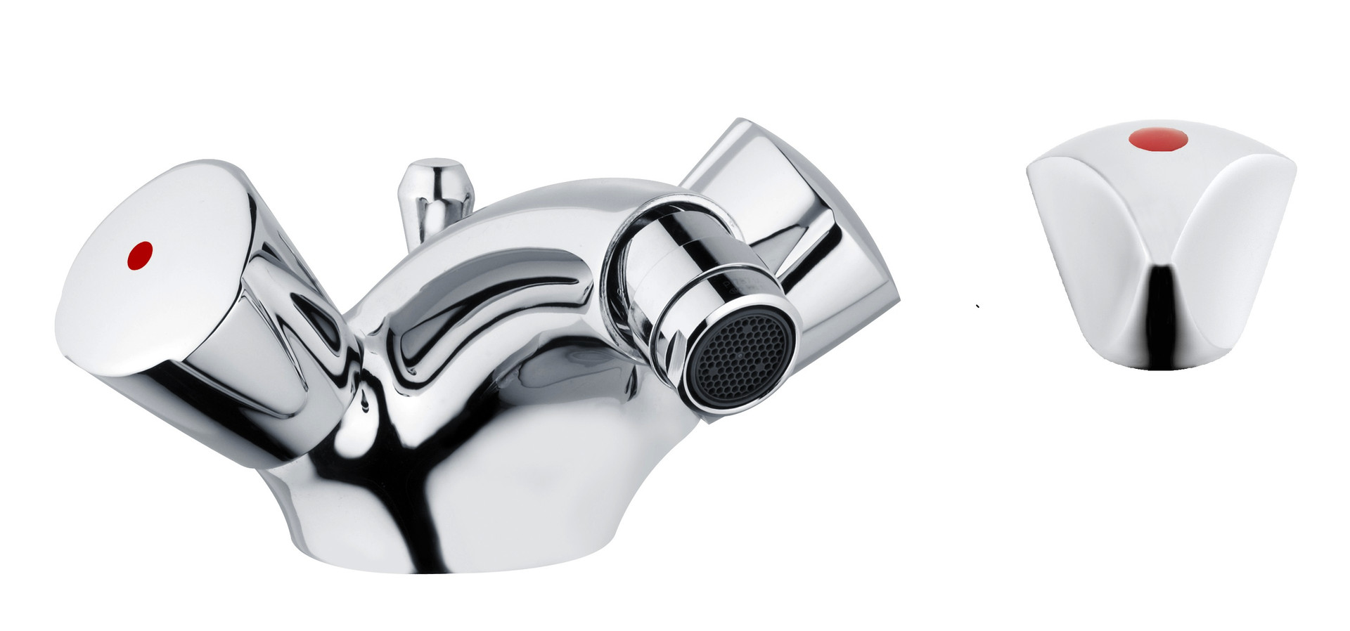 Schulte Bidet-Zweigriff-Armatur classic-line_2 Ausladung 105mm, schwenkbar, Ablaufgarnitur, verchromt, Princess-Luxusgriff W327126