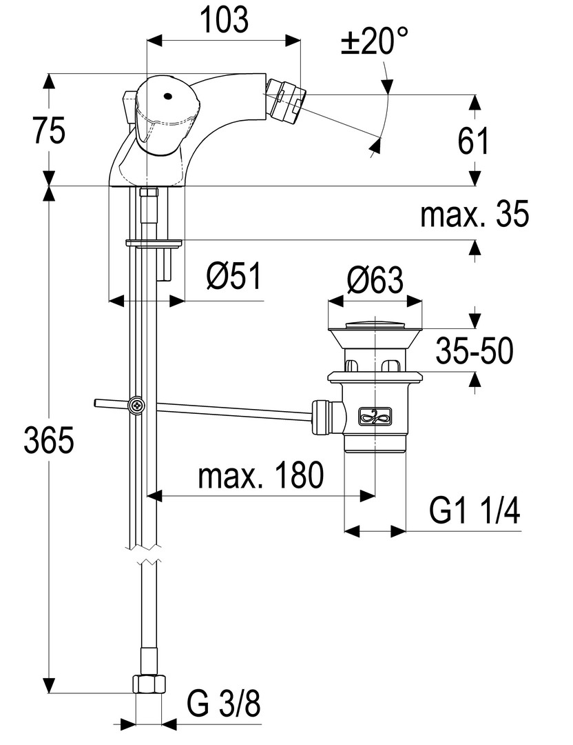 | Art der Ablaufgarnitur | Pop-up-Ventil mit vertikalem Hebel |