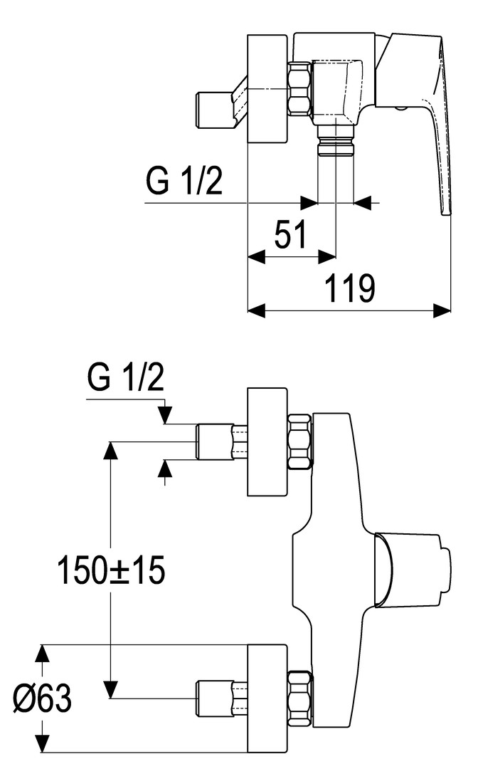 Brauseabgang 1/2", Kartusche 35 mm offen, mit Heißwasser- und Durchflussbegrenzer, Werkstoffe nach TrinkwV und UBA, Hebel Metall, DIN DVGW, Geräuschprüfzeichen PA-IX 7200/IIA, für Wandmontage, eigensicher gegen Rückfließen, für Durchlauferhitzer geeignet