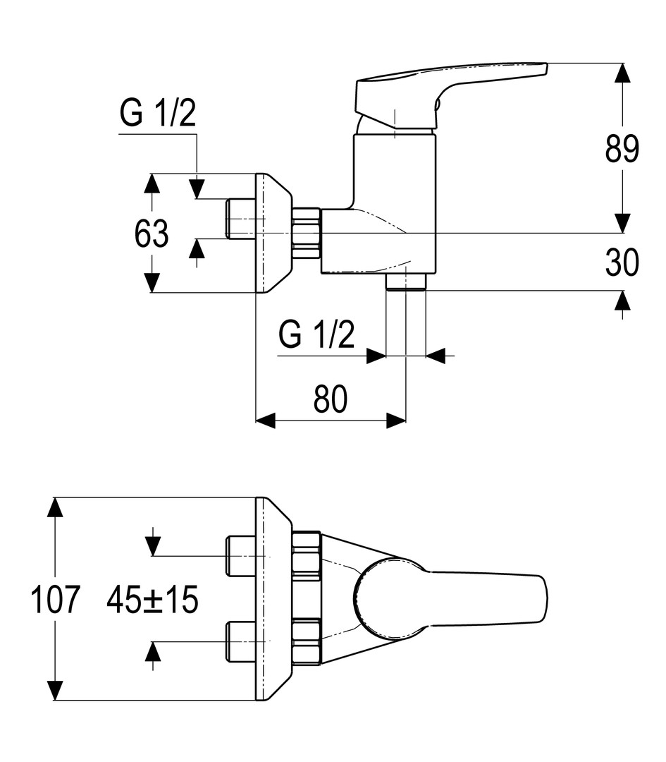 Brauseabgang 1/2", Kartusche 35 mm, mit Heißwasserbegrenzer, Werkstoffe nach TrinkwV und UBA, Hebel Metall, für Wandmontage, eigensicher gegen Rückfließen, für Durchlauferhitzer geeignet
