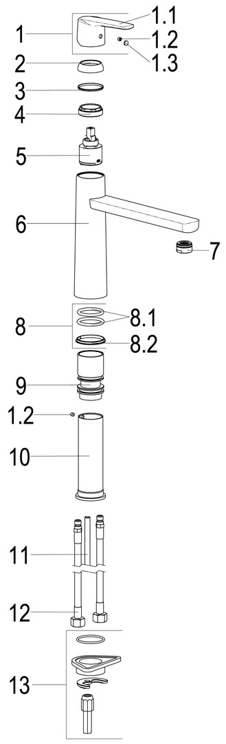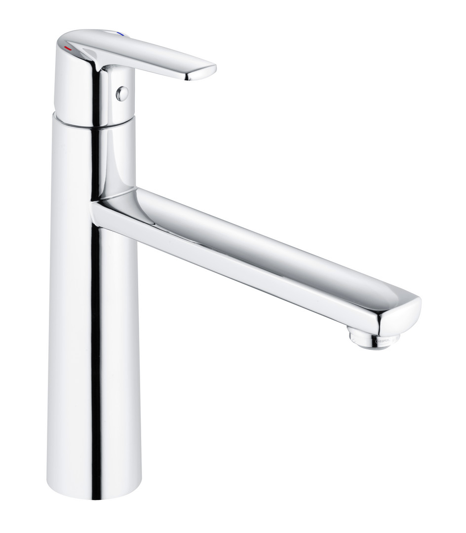 Kartusche 35 mm, mit Heißwasserbegrenzer, Werkstoffe nach TrinkwV und UBA, Hebel Metall, Flexschläuche 3/8" DIN DVGW, Strahlregler Durchflussklasse C, Antikalk, für Standmontage, mit Schnellbefestigung