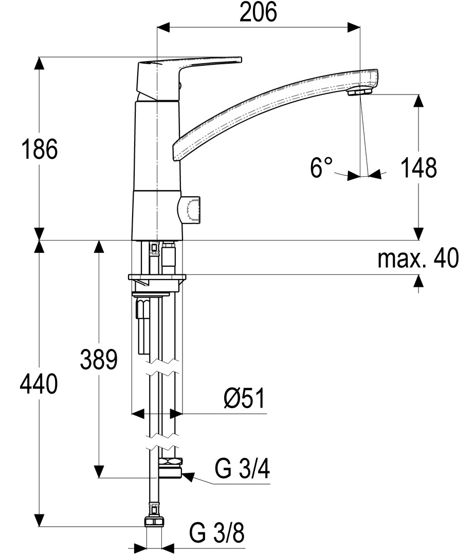 | Aufbauhöhe Unterkante Hahnauslass | 148 mm |