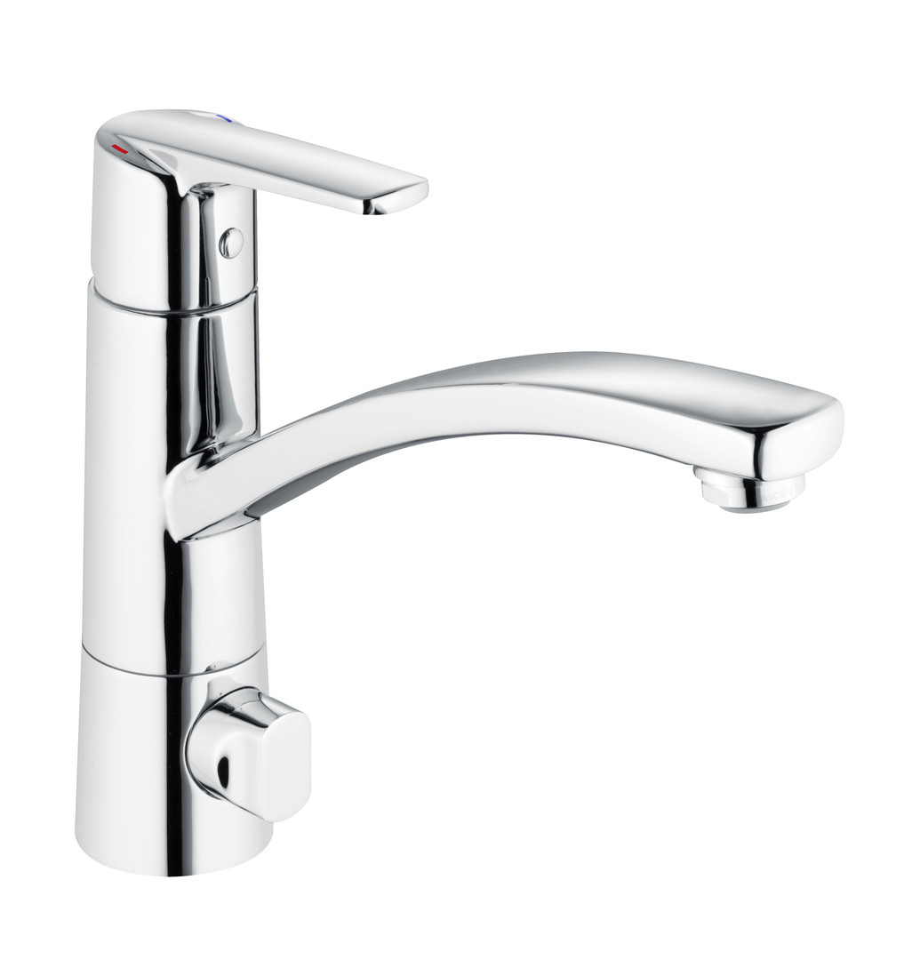 Kartusche 35 mm, mit Heißwasserbegrenzer, Werkstoffe nach TrinkwV und UBA, Hebel Metall, Flexschläuche 3/8" DIN DVGW, Strahlregler Durchflussklasse C, Antikalk, mit Schnellbefestigung