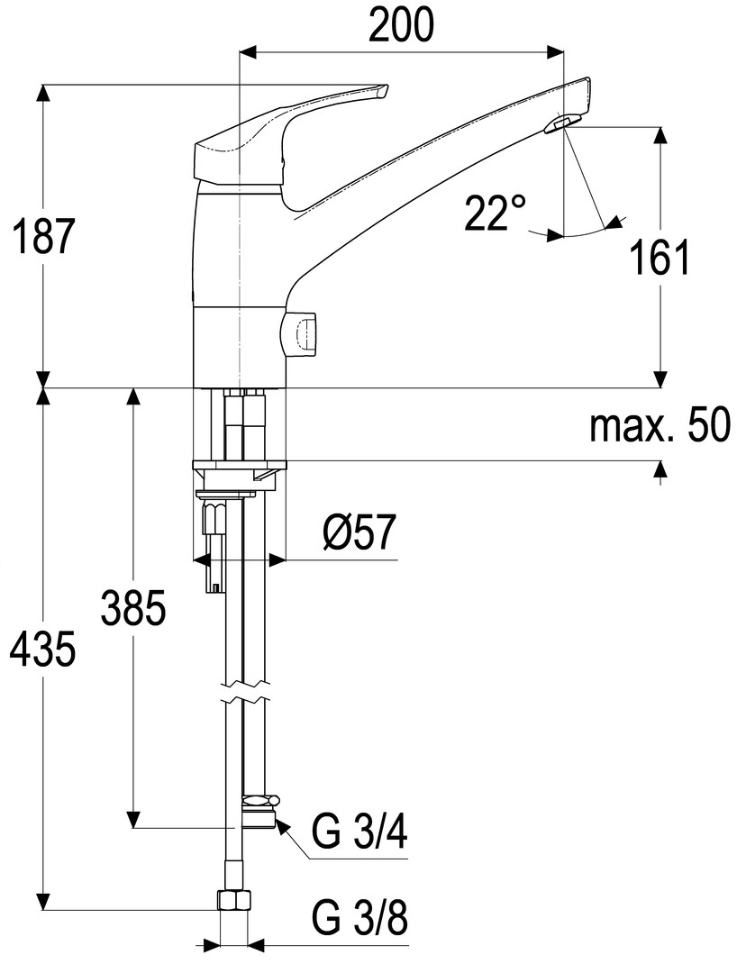 Schulte Spültisch-Einhebelmischer ascona_1 Ausladung 200mm, schwenkbar, mit Geräteanschluss, verchromt