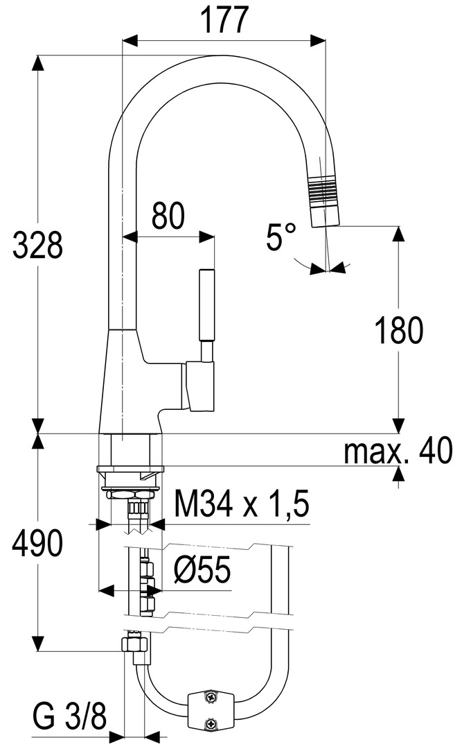 | Aufbauhöhe Unterkante Hahnauslass | 180 mm |