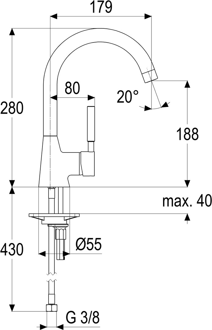 | Aufbauhöhe Unterkante Hahnauslass | 188 mm |