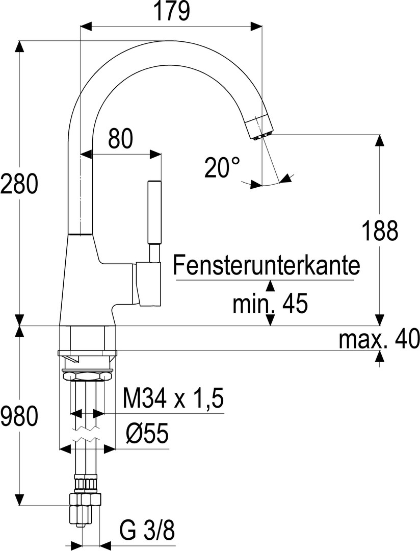 | Aufbauhöhe Unterkante Hahnauslass | 188 mm |