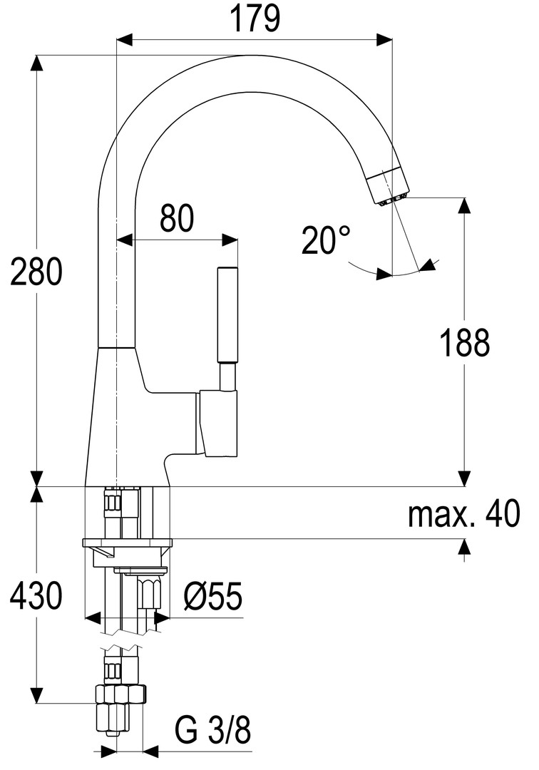 | Aufbauhöhe Unterkante Hahnauslass | 188 mm |